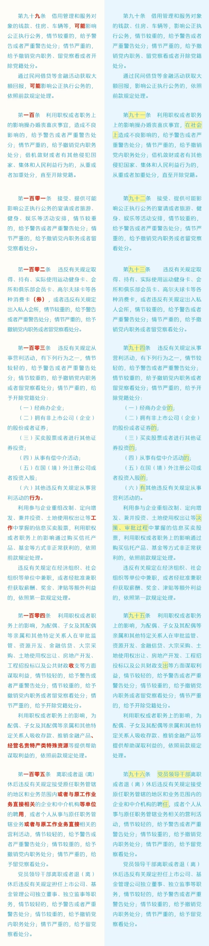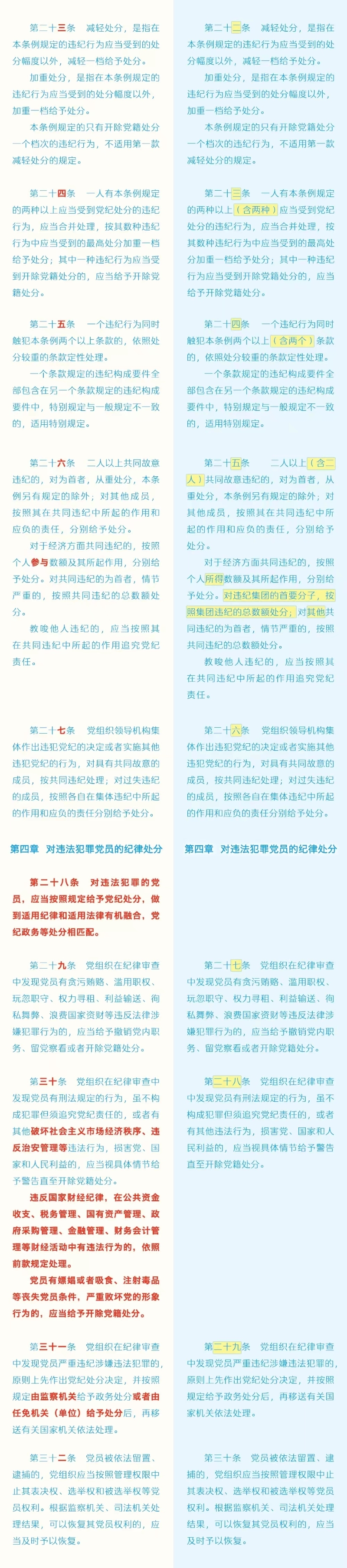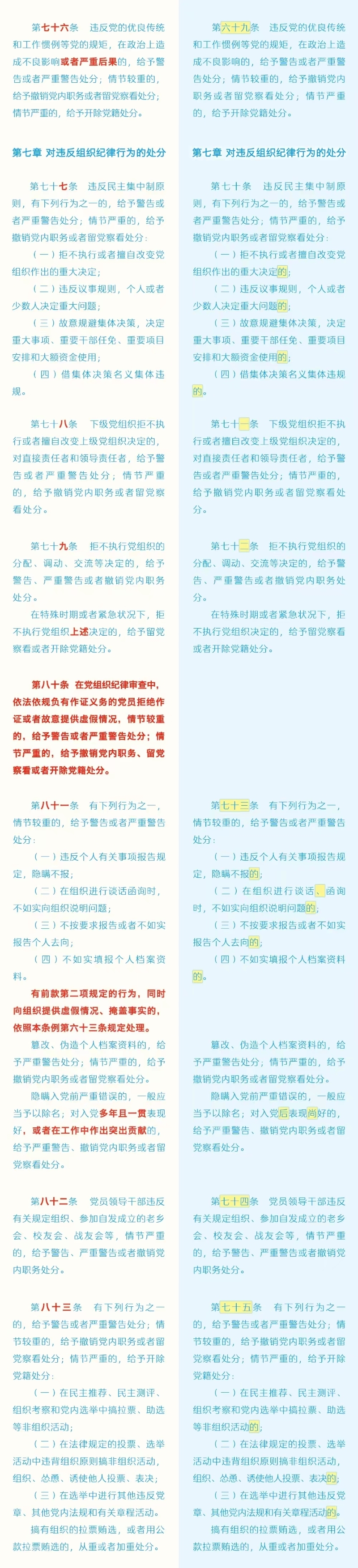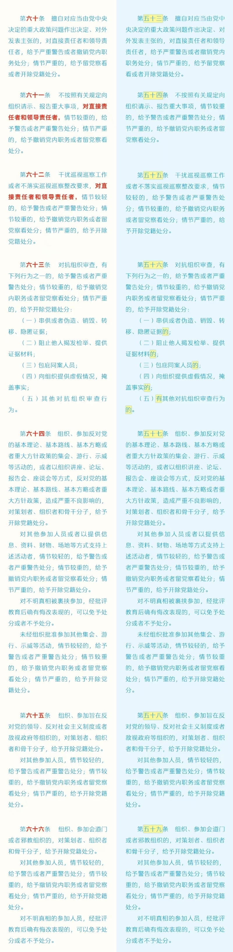 劃重點+對照學(xué)習(xí)!《中國共產(chǎn)黨紀(jì)律處分條例》修訂條文對照表