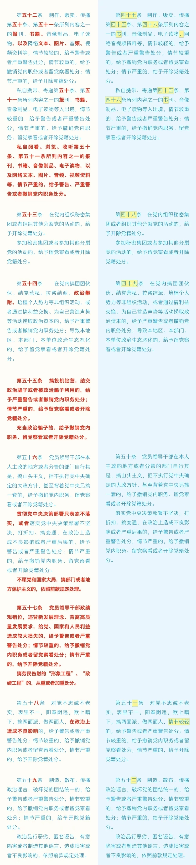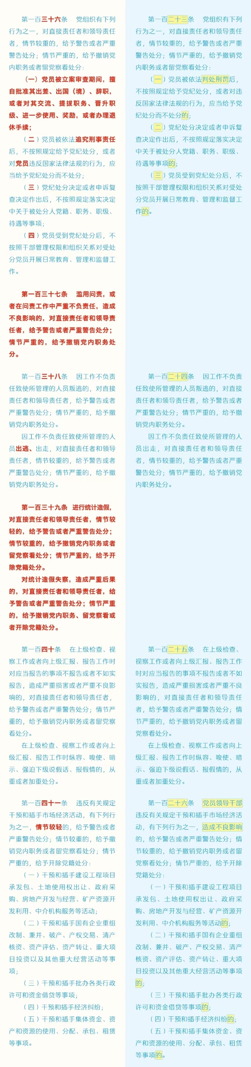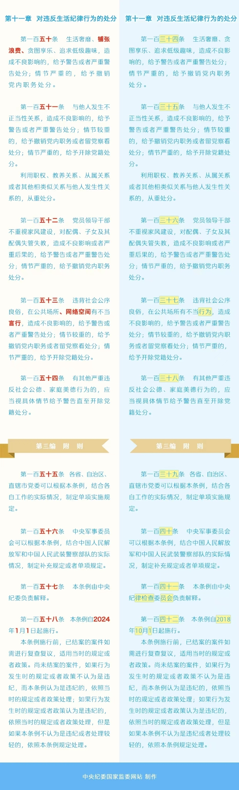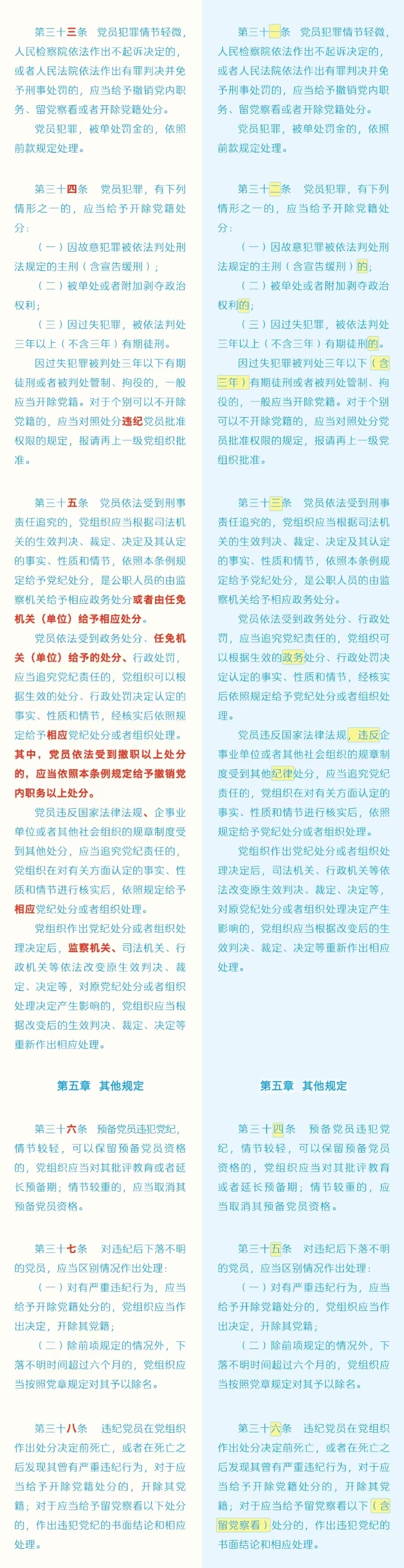 劃重點+對照學(xué)習(xí)!《中國共產(chǎn)黨紀(jì)律處分條例》修訂條文對照表