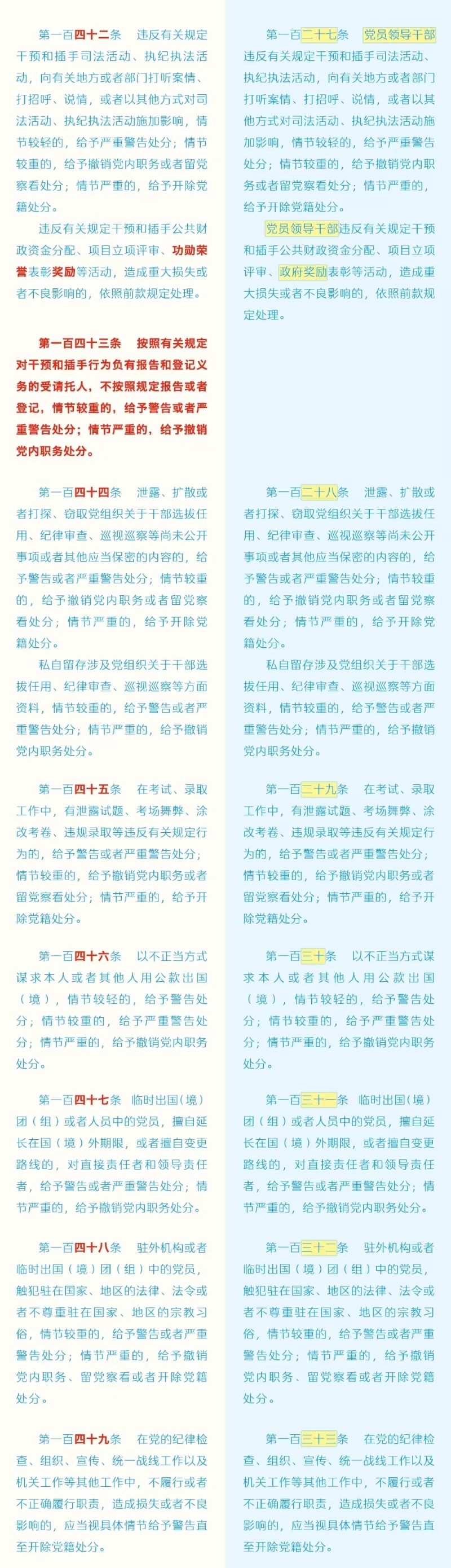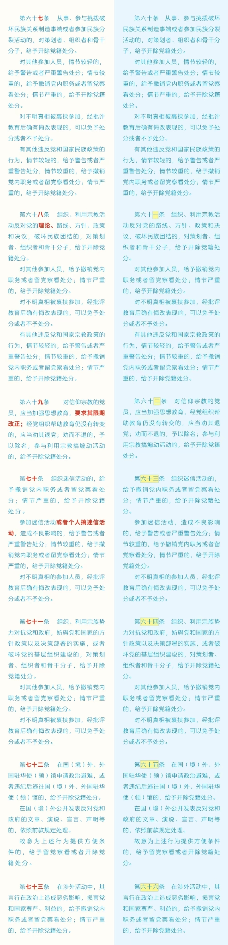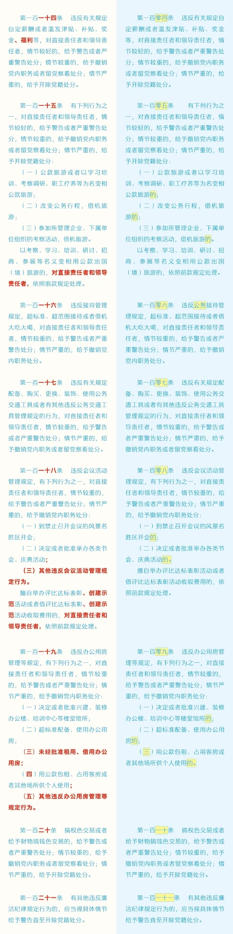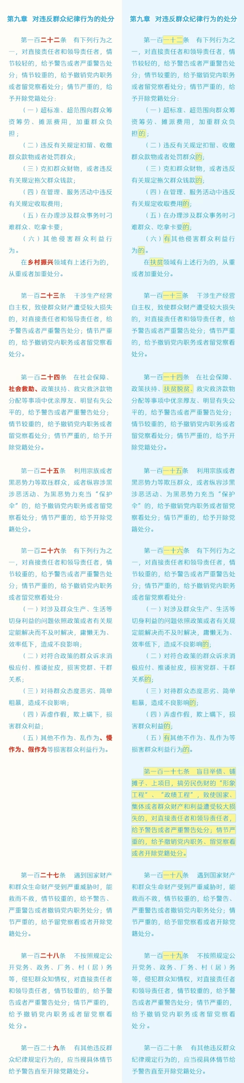 劃重點+對照學(xué)習(xí)!《中國共產(chǎn)黨紀(jì)律處分條例》修訂條文對照表