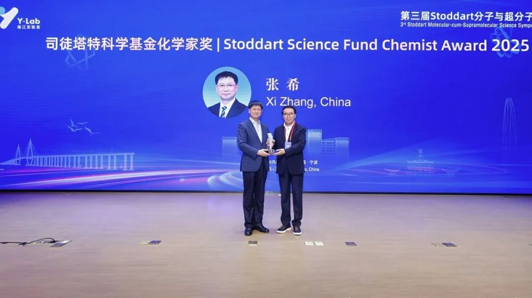 第三屆Stoddart分子與超分子科學研討會期間,舉行了2025年度“Stoddart科學基金化學家獎”頒獎儀式。吉林大學校長、中國科學院院士張希憑借其在超分子化學領域的卓越貢獻獲此殊榮,中國科學院原院長白春禮院士為其頒獎。
