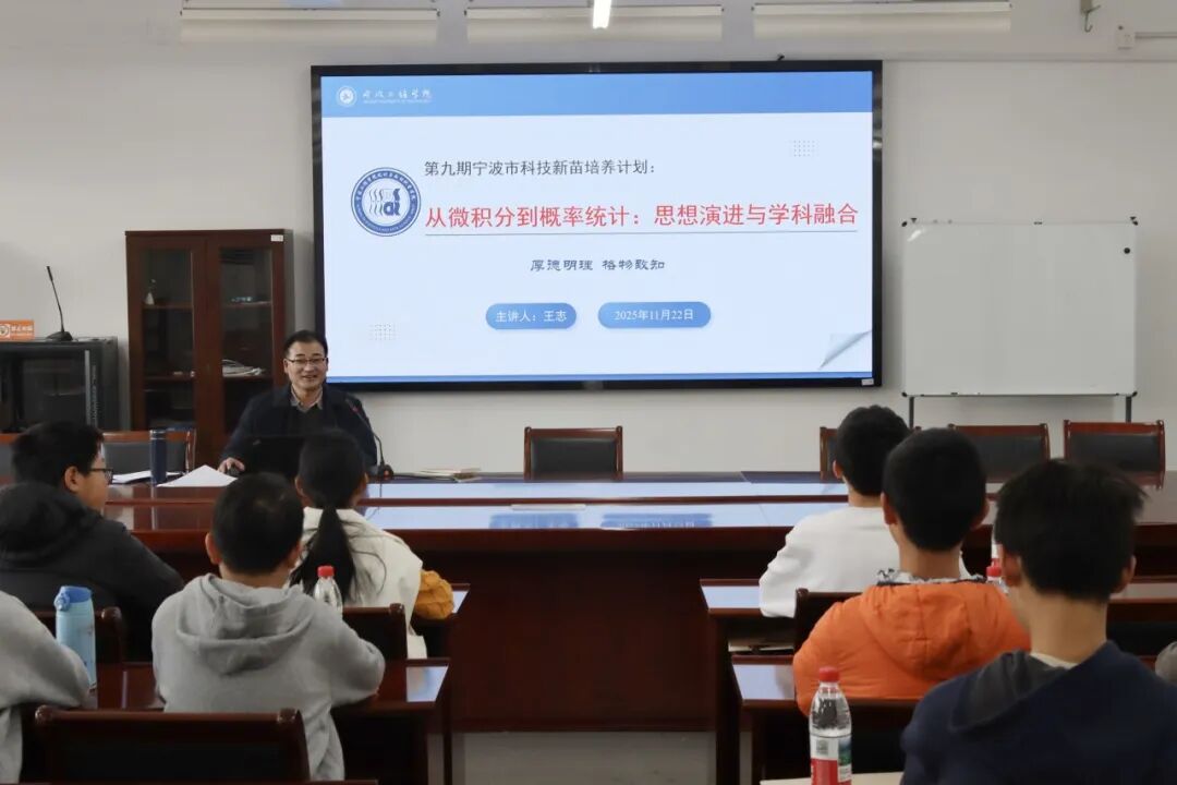 11月22日,第九期寧波市科技新苗培養(yǎng)課程活動在寧波工程學(xué)院統(tǒng)數(shù)學(xué)院開講。本次活動依托統(tǒng)數(shù)學(xué)院學(xué)科特色與師資力量,為來自全市多所中學(xué)的科技新苗學(xué)員帶來了一場融知識、趣味與思維拓展于一體的數(shù)據(jù)科學(xué)之旅。